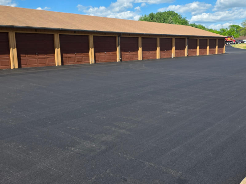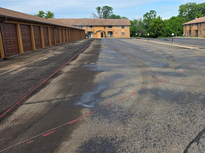 Despite a few challenges caused by rain, the project was completed in just four days—two days of prep and two days of paving and striping. Our prep work included milling transitions in front of garage entrances to ensure a smooth grade and addressing some minor drainage concerns to improve long-term performance.